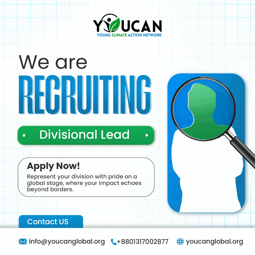 The Young Climate Action Network (YOUCAN) is inviting applications for Divisional Leads across Bangladesh. This role is for passionate and committed young leaders who want to drive climate action, policy advocacy, and youth mobilization at the divisional level.