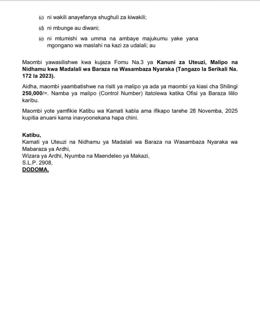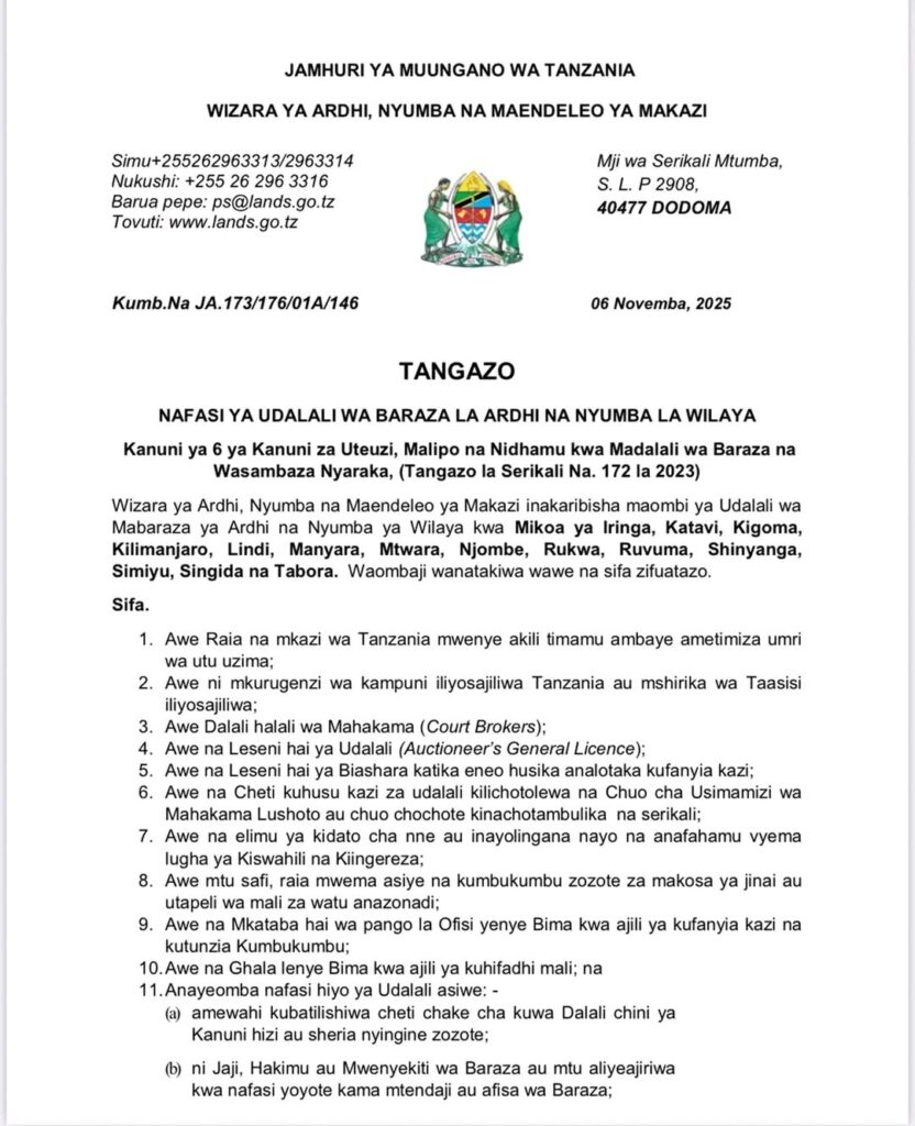 One thought on “TANGAZO: Nafasi za Udalali wa Baraza la Ardhi na Nyumba la Wilaya